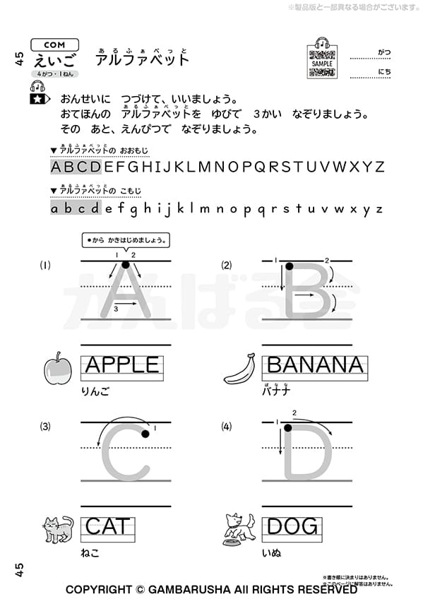 2ページ初めて英語に触れるお子さまでも、英語を学習中のお子さまでも、取り組みやすい内容です。