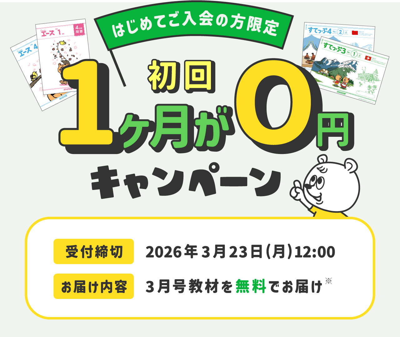 - 再入会のお子さまは、初回教材から有料でお届けします。
