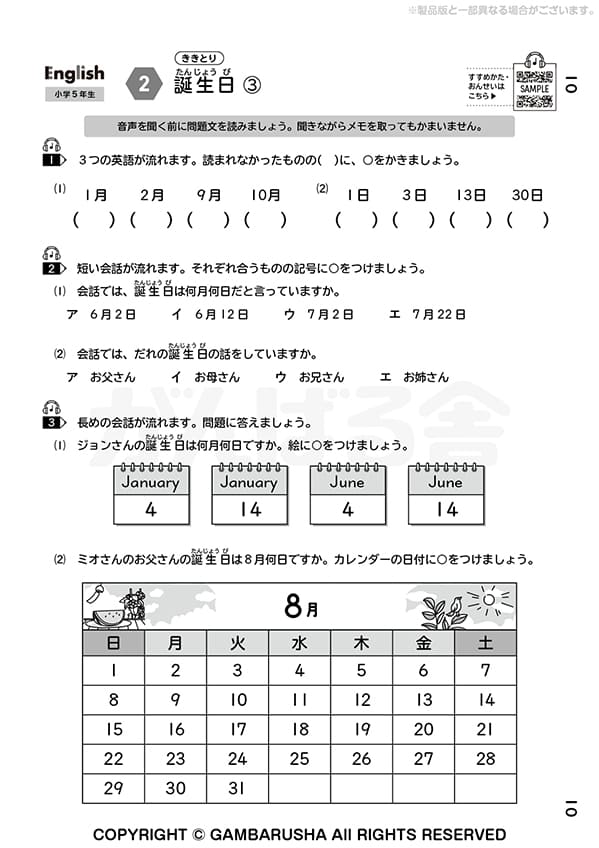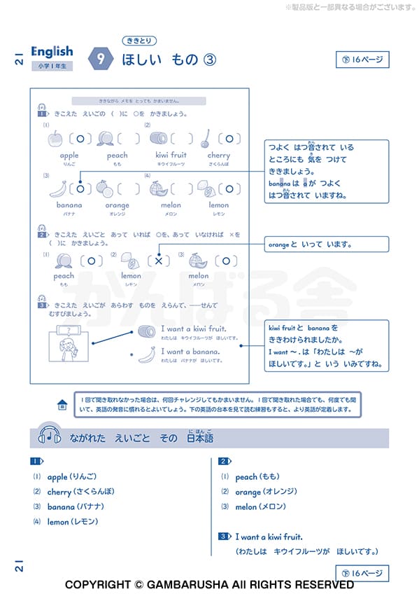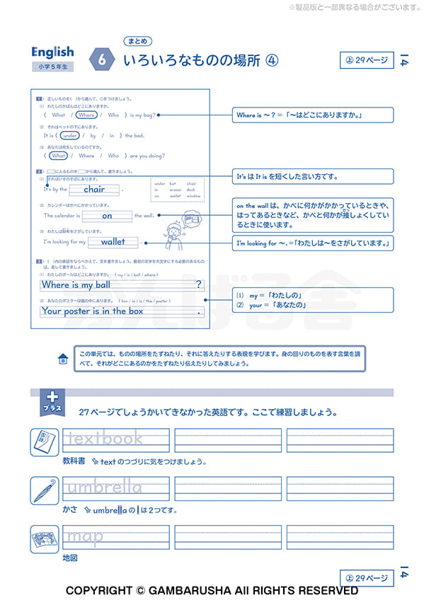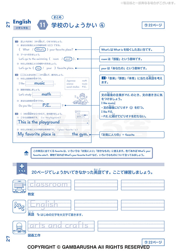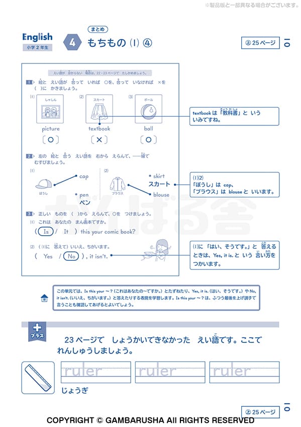小学生向けのオプション教材は、1年間の学習を一冊にまとめた、全国共通内容の教材です。